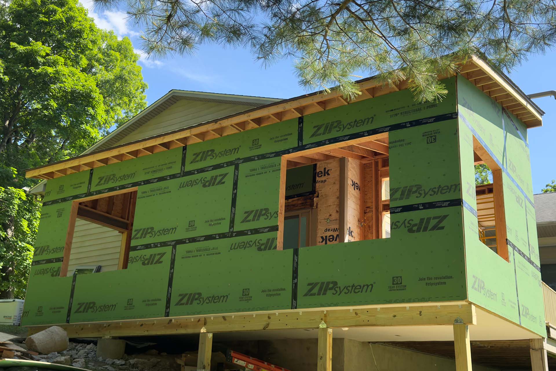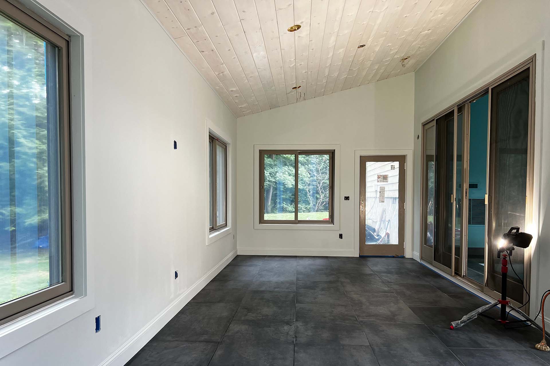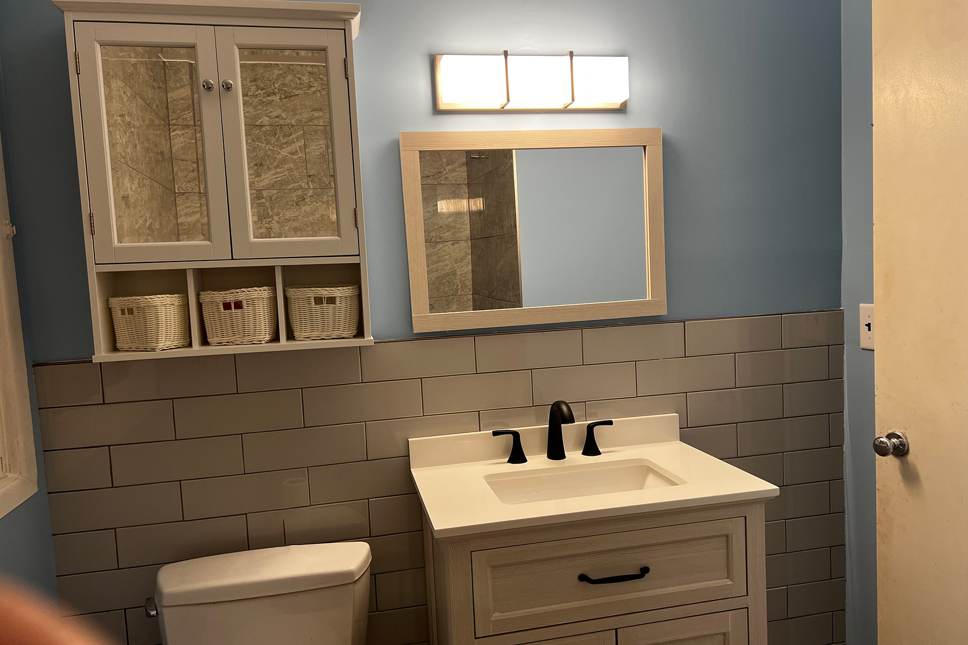 Bathroom and kitchen upgrades, with sheathing, drywall, and painting services.